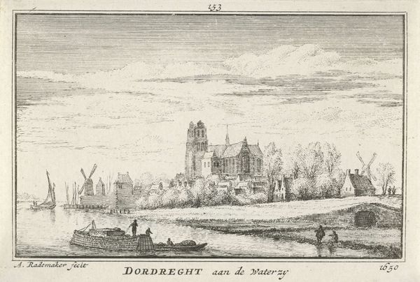 Abraham Rademaker created this print of Kasteel Radboud te Medemblik in the early 18th century, capturing the castle’s imposing presence during a period of Dutch history marked by both maritime power and complex social hierarchies. Here, the castle is not merely a structure of stone and mortar but a symbol of power, and of the gendered and classed dimensions of Dutch society. Built in 1289, it served to protect the Netherlands from invasion from the West Frisians. By the time Rademaker made this print, the castle was being used as an arsenal. We might consider how the imagery of fortification and defense speaks to notions of masculinity and dominance. The detailed rendering of the castle contrasts with the more diminutive figures in the foreground, perhaps emphasizing a social hierarchy inherent in the landscape. Rademaker’s choice to depict the castle amidst windmills and ships also hints at the economic engines driving the Dutch Golden Age. Rademaker's print encourages us to reflect on how power structures are embedded in our environments and continue to shape our collective identity.