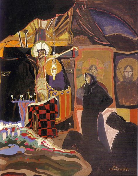 Cyprián Majerník made this painting, Upheaval, with an expressive approach to mark making that feels both deliberate and spontaneous. The material aspects of the work, like the thick, opaque paint, contribute to its emotional and conceptual resonances. The texture is rough, almost raw, and you can see the physicality of the medium in every brushstroke. Look at the way Majerník layers color in the carpet; it’s a chaotic mix of brown, reds and oranges, creating a sense of unease. This relates to the piece as a whole, where the scene is of religious ritual, but it is made to feel very human and unsteady. The figures in Upheaval remind me of the work of artists like Georges Rouault, who used bold lines and distorted forms to convey emotional intensity. Art, it’s an ongoing conversation across time, full of ambiguity and multiple interpretations.