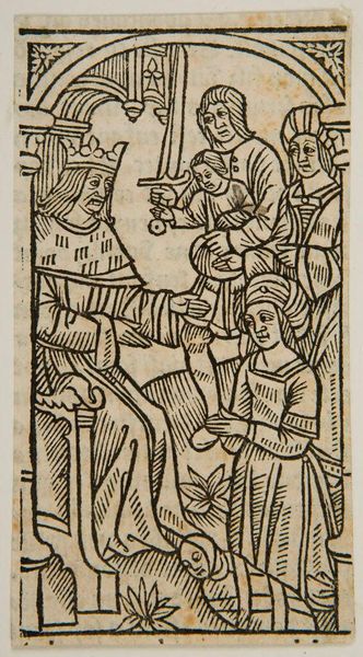 Curator: Here we have an intriguing early print, "Christ approaching Jerusalem," an anonymous piece housed at the Harvard Art Museums. Editor: The stark lines and limited palette give it a sense of somber foreboding, doesn't it? Almost like a prophecy rendered in wood. Curator: Precisely. The composition guides our eye to the stylized rendering of Jerusalem, those stark vertical towers looming. The use of line is so economical yet effective. Editor: And considering the historical context, that approach to Jerusalem is fraught with political and religious tension. It’s not just an entry; it's a challenge to power. Curator: One might also say the artist’s simplification reflects theological certainty. The formal elements support a clear, didactic function. Editor: Perhaps, but I see also a quiet resistance in those very choices, a subtle commentary on the structures of authority. Curator: Interesting points to consider. This piece certainly exemplifies how form and sociohistorical context can mutually enrich our understanding. Editor: Absolutely. It leaves us contemplating not only the scene but also the ways art carries and shapes our understanding of history.