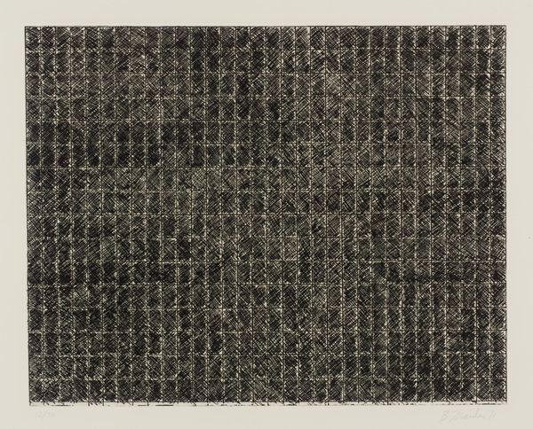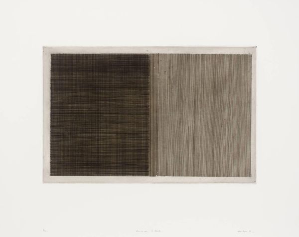 Editor: So, this is Alan Green’s "Black Diagonal to Edge," of an unknown date, housed at the Tate. It’s a print, and it feels stark, almost confrontational in its simplicity. What do you see in this piece? Curator: I see a meditation on the politics of looking. Green's abstraction challenges traditional representation, disrupting conventional narratives. How does its presence in a major institution like the Tate affect its meaning? Editor: That’s interesting. Does the museum setting validate the work, or does it somehow neuter its original intent? Curator: It's a negotiation. The museum elevates it, granting cultural capital, but simultaneously it risks domesticating the work's radical potential. Consider how its initial reception might have differed. Editor: I hadn't thought about how the Tate's influence could change the interpretation. Thanks! Curator: Exactly. It’s about thinking critically about the institutions that shape our understanding of art.