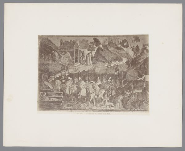 Lucien Pissarro created "Daphnis et Chloe," a wood engraving that uses stark contrasts to render an idyllic scene with figures in a landscape. The composition is densely packed, with figures emerging from a dark background, illuminated by torches. The artist’s use of hatching and cross-hatching creates a rich surface texture, emphasizing the materiality of the woodblock. This textural complexity infuses a sense of depth and movement to the scene. The stark contrast between light and shadow isn’t merely descriptive; it’s a structural device. Pissarro employs it to guide the viewer's eye, creating focal points and shaping the narrative flow. The composition suggests a tension between the classical subject matter and the modern approach to form, inviting us to consider how traditional themes can be reimagined through innovative techniques. Pissarro challenges fixed ideas about pastoral imagery.