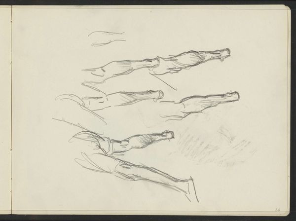 Elihu Vedder made this study for "The Fates Gathering in the Stars" using white chalk and graphite on paper. The choice of these materials is particularly interesting because they are so immediate. The drawing captures Vedder's exploration of form and composition, as he meticulously renders the hand's gestures with careful attention to anatomy and expression. The powdery texture of the chalk and the smooth glide of the graphite allow for subtle gradations of light and shadow, enhancing the three-dimensionality of the figures. The visible marks and erasures tell a story of artistic process, as Vedder refines his composition and adjusts the poses of the figures. This emphasis on process over perfection challenges traditional notions of artistic skill, inviting viewers to appreciate the labor and thought that go into creating a work of art.