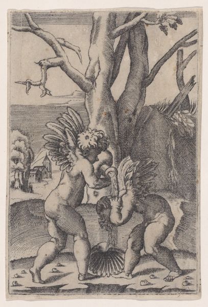 Georg Wechter made this print of Pan and Syrinx using etching, but we don’t know exactly when. The story of Pan and Syrinx comes from Ovid’s "Metamorphoses," a popular source for artists since the Renaissance. The image shows the nymph Syrinx fleeing from Pan, a figure with human and goat-like features. Syrinx is turning into reeds to escape Pan’s unwanted advances. To understand this work in its historical context, we can explore several avenues. What did the story of Pan and Syrinx mean at the time this print was made? How did ideas about gender and sexuality influence the representation of this myth? How was Ovid understood, used, and taught in the period? By researching the artist, the cultural meanings of classical mythology, and the social history of gender, we can begin to understand this print not just as an illustration, but as a product of a specific time and place.