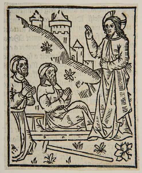 Curator: This fascinating, unsigned woodcut at the Harvard Art Museums is titled "Temptation of Christ." The stark contrast immediately gives it a dramatic feel. Editor: The composition feels incredibly tense; the figures are tightly packed and the lines are so sharp. There's a definite sense of impending struggle here. Curator: Woodcuts like these were relatively inexpensive to produce, allowing for wider distribution of religious imagery and narratives. The lines are bold. Editor: It's interesting how the artist depicts the devils – not just as evil figures, but almost as caricatures of human greed and desire. Look at the posture and positioning of those on either side of Christ. It speaks volumes about societal anxieties of the time. Curator: The act of carving itself, removing material to create the image, speaks to a process of revealing truth through labor. Editor: Ultimately, this piece highlights the perpetual battle between faith and doubt, a conflict that resonates deeply within the human experience, regardless of time or background. Curator: A good reminder of the power of simple materials to convey complex ideas. Editor: Indeed. It's a powerful reminder of the enduring relevance of historical art in contemporary dialogue.