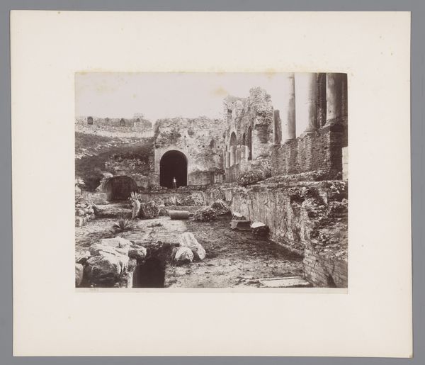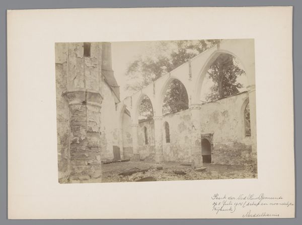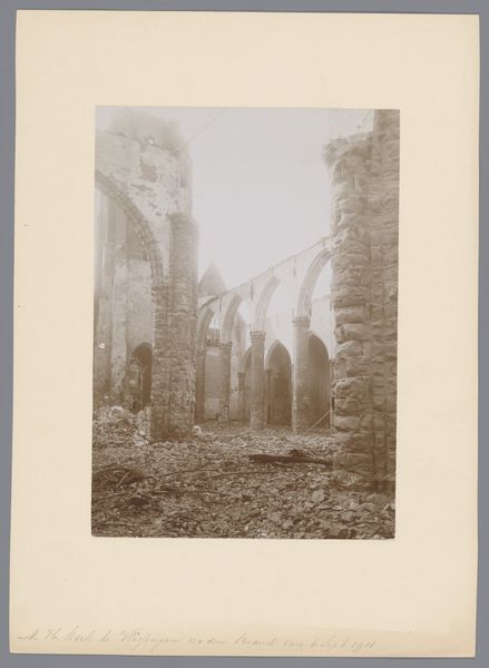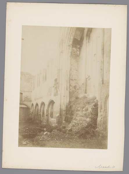 This photograph depicts the interior of the ruined Beyart monastery in Maastricht. Its sepia tones and the play of light and shadow create a melancholic atmosphere. The composition is dominated by the skeletal remains of the architecture, with arches and walls framing the open space, drawing the eye deeper into the ruin. The photograph's structure invites us to consider ideas around time, decay, and the sublime. The crumbling architecture speaks to the transience of human endeavors, contrasting with the enduring presence of nature. The photo unsettles notions of permanence, reflecting on the cyclical nature of creation and destruction. We can view the ruins as a semiotic sign, representing not just physical decay, but also the fading of historical narratives. The photograph uses formal elements to engage with broader philosophical questions. The arrangement of light, space, and texture encourages a re-evaluation of values placed on permanence and challenges viewers to find beauty in the process of disintegration.