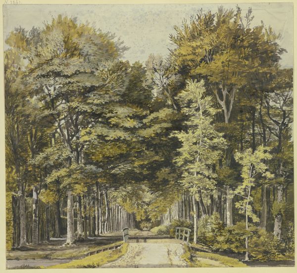 Editor: Jean-Baptiste Oudry's "View of the Park at Arcueil," created around 1744 using pencil, charcoal, and chalk on paper. The drawing strikes me as a study in controlled nature. The lines are so deliberate, so planned. What story do you think this landscape is trying to tell? Curator: Well, Oudry's choice to depict this park in such detail speaks to the changing relationship between the aristocracy and nature in the 18th century. Formal gardens like Arcueil were not just spaces for leisure; they were expressions of power and control. Editor: So, the carefully arranged trees and precise fountain aren't just about aesthetics? Curator: Exactly. These gardens reflected a worldview. Consider, landscape architecture was a crucial tool for displaying power in visual terms, as were estate management and hunting practices. Who controlled land use, dictated its representation in art. This piece also shows Oudry embracing "plein-air" or outdoor sketching which contributed to the creation of the more naturalistic gardens that would become en vogue in the 19th Century. How might the artistic representation of public parks democratize similar cultural aspirations, but outside of a system that excludes people from power? Editor: That’s a great point. Seeing it this way, the drawing becomes less about a beautiful landscape and more about the ideologies embedded within it. Thanks for sharing. It has given me much to ponder. Curator: Likewise. This image gives us a glimpse into how art and social structures influence each other.