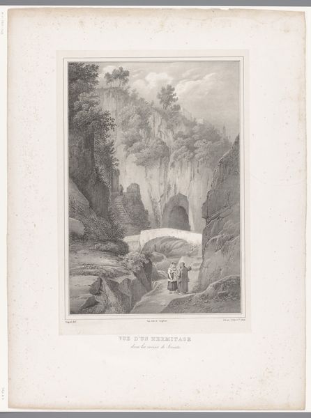 This is Adolphe François Pannemaker's "Mountain Landscape with Monastery," an engraving. Pannemaker skillfully used metal plates and sharp tools to create a highly detailed print. The process begins with incising lines into a metal plate, which then holds ink to transfer the image onto paper. Notice the fineness of the lines, built up to create shading and texture. This demonstrates the artist's mastery of the engraving technique. Pannemaker captures the weight and solidity of the rock face, while differentiating it from the texture of the vegetation. Consider the labor involved in such a precise process, which existed in tandem with the rise of industrialization. The printmaking trades flourished by reproducing imagery for a growing public, but at the expense of the artisan's individual expression. By appreciating the materials and techniques used, we can deepen our understanding of the artwork. This challenges traditional distinctions between fine art and craft.