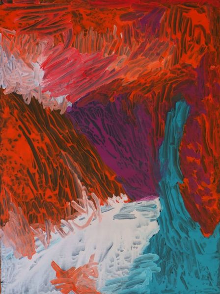 Editor: Here we have Sally Gabori's "Dibirdibi Country," painted in 2012 using acrylic on canvas. The bright colors and bold brushstrokes make it feel almost like a map of a dream. I am struck by the tension between representation and abstraction in this painting; what do you make of it? Curator: For me, Gabori’s work dances between memory and the present moment. It sings of her homeland, Bentinck Island, but through a deeply personal lens. It feels like the landscape is not so much depicted, as remembered and felt, visceral almost, don’t you think? Editor: Absolutely. It's as if the colors themselves hold memories. I love how she uses this vibrant palette to convey a sense of place, yet I keep wondering, is this how the island truly *looks*, or how she *feels* about it? Curator: Ah, that’s the beautiful tension, isn’t it? The beauty lies in the slippage, the glorious gap between reality and the artist's heart. I reckon she is using those colors to excavate feelings, family, her connection to land, like little shimmering echoes, not just places, you know? It’s about conjuring, not copying. Does that resonate with you? Editor: It really does! The idea of "conjuring" the island through color is lovely. I initially focused on the abstraction, but hearing about memory makes it more personal. Curator: Memory changes things, bends light, distorts shapes! The colours and lines speak to what remains – what she chooses to share. Editor: I appreciate understanding this piece more, not as just an abstract painting, but as a personal story of longing and belonging told through vivid hues. Curator: Precisely! It’s an invitation into Gabori’s world and she makes up her own visual language in which to tell it. Delicious, isn't it?