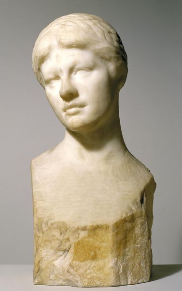 Here we have a plaster sculpture of Davida Johnson Clark, crafted by Augustus Saint-Gaudens. The piece presents us with a play of soft curves and intricate textures, inviting a close visual reading. The arrangement of forms in this sculpture is carefully calibrated. Saint-Gaudens employs a classical approach, yet softens it through the dynamic rendering of Clark’s hair and the subtle asymmetry of her features. This brings a liveliness to the sculpture. The bust's formal structure is more than just a physical likeness; it engages with contemporary ideas about representation and identity. The very texture of the plaster, with its visible marks of the artist's hand, disrupts the illusion of a perfect likeness, reminding us of the process of creation and the artist's interpretation. Such an engagement with material honesty questions traditional notions of beauty and permanence, aligning with broader artistic dialogues about authenticity.