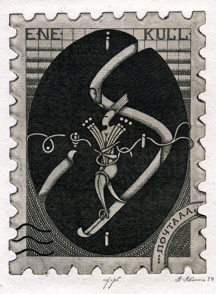 This intaglio print called 'Tõnis Vint. PostA' was made by Oleksandr Aksinin in 1984. It’s all about the push and pull of black and white, the way they make each other sing. It’s a real dance of precision! Aksinin uses the visual language of stamps to present his fantastical image. The overall surface feels almost like a collage with lots of little detailed areas. Take the central figure; the way it’s formed from geometric shapes is almost robotic, contrasting with the botanical forms which surround it. Aksinin is engaging in a wider conversation about the purpose of art and its ability to transcend borders and political divides. I think that Aksinin would get on well with someone like the surrealist Leonora Carrington, another artist committed to the power of the imagination! The best art refuses to give you easy answers; instead, it invites you to ask more questions.