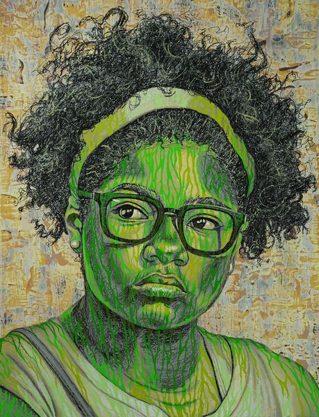 Monica Ikegwu made this *Self Portrait* using monochromatic paints. It looks to me like the process starts from a place of deep looking, which leads to a sense of real vulnerability. There's something super interesting about the material aspects of this work. I'm particularly drawn to the reflection on her lips, where the paint appears almost wet, creating a focal point that’s both alluring and slightly unsettling. I keep thinking about how this is a self-portrait, and how the artist has chosen to represent herself in such a stark, yet intimate way. It's difficult to place Ikegwu within a direct lineage, though I think of artists like Alice Neel, who also had a knack for capturing the psychological depth of her sitters. In the end, *Self Portrait* is a painting that stays with you, inviting multiple interpretations and challenging our notions of identity and representation.