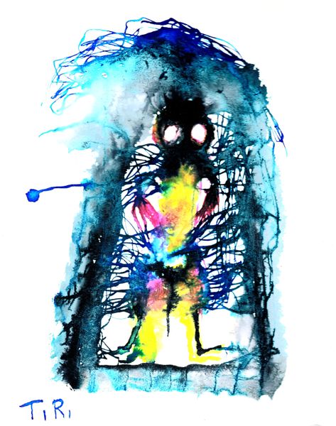 This untitled work by Thomas Riesner is a striking image made with marker on paper, its simple means belying the intensity of its expression. The stark use of black, red, and blue creates a raw emotional impact. The figure, trapped behind a web of lines, evokes feelings of isolation and struggle. This piece might reflect the social anxieties of the late 20th and early 21st centuries in Germany, born of political disillusionment, economic instability, and questions of personal identity in the face of increasing globalization. Perhaps the artist is commenting on the restrictive structures of society, be they physical or psychological. Analyzing Riesner's work requires considering the broader historical and cultural context. Researching the artistic movements and social conditions prevalent in Germany during his career can provide valuable insights into the meaning and significance of this piece. Art becomes meaningful when we think about its role within a specific culture.