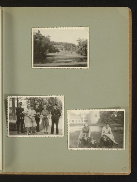 Curator: Here we have a spread from a photo album entitled "Op patrouille", dating from 1948-1949. These are albumen prints depicting what seems to be military personnel in a tropical landscape. What catches your eye? Editor: The stark contrast, the tonal range within this series of photographs, projects an aura of solemnity. And also I note that all of the photos exhibit signs of slight silvering in the darker portions of the photographs. Curator: Silvering is commonly found in older prints; it has a reflective, metallic sheen when viewed at an oblique angle and certainly gives them added character. These prints function almost as reportage from a specific socio-political context—the colonial military presence, the power dynamics visible even in their arrangement within the album. The historical context surrounding these photographs needs understanding. Editor: It’s a very linear composition with repetitive borders throughout each print and an echoing of squares in the frame corners, and though disparate scenes are pictured, I would consider the photo series as one composition as its formal visual cues connect the series of snapshots. Curator: Exactly, the album itself is an artifact that requires some attention, almost as an institution—a curated collection of memories designed for a specific audience and perhaps tailored to show what colonizers wished others to believe was actually the status of daily life in colonial society. The album becomes an instrument for presenting self-justification by means of a photo's claim to record some kind of neutral truth. Editor: I also read some vulnerability in this visual display; though these are military images, the silvering suggests these might be aged memories with some sorrow tied into this project. Curator: That may be over-interpreting the materiality, but your reading makes me ponder the individuals included. We can now recognize the staged elements within photographs more easily, considering how media shapes the public narrative. How these prints are mounted and contextualized emphasizes both the collective nature of colonial enterprise and the constructedness of its projected image. Editor: Perhaps these impressions are both true: visual record and staged artifact. And there's real pathos locked within them, if you accept their formal attributes like visual style as also culturally inscribed. Thank you; this series requires greater analysis of those connections.