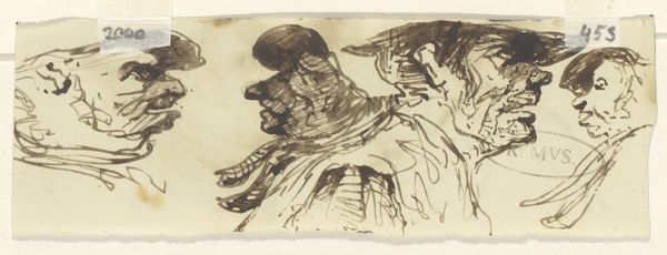 Johannes Tavenraat rendered "Two Heads" in ink on paper, presenting us with a study in contrasts. The composition is immediately striking; two heads face each other, yet their styles diverge sharply. On the left, vigorous, almost frenetic lines capture a figure with deeply etched wrinkles and a weathered expression, suggesting age and experience. In contrast, the figure on the right is depicted with smoother, more controlled strokes, creating an air of elegance. The juxtaposition invites a semiotic reading: the rough lines signify one kind of lived experience, while the smoother lines suggest another. Tavenraat destabilizes any fixed notion of portraiture; the work is not about individual identity but rather a commentary on types and archetypes, challenging viewers to question how we construct meaning through visual representation. The work ultimately serves as a cultural discourse on aging, class and representation.