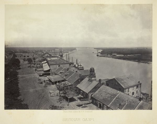 Editor: So, this is George N. Barnard's "Savannah, GA, No. 2," taken in 1866. It’s a gelatin-silver print. What immediately strikes me is the stillness of the scene, the quiet that seems to emanate from it despite it being a cityscape of sorts. What do you see in this image? Curator: That stillness you observe is quite perceptive. Beyond the surface representation of a post-war port, I see layers of symbolism tied to trauma and transition. Notice the arrangement of ships; their masts like skeletal remains against the sky, burdened with unspoken histories. What does the lack of visible human activity suggest to you? Editor: Hmm, perhaps a city trying to rebuild, empty spaces where life once thrived. Maybe it is speaking to collective mourning? Curator: Precisely. Barnard’s choice to capture Savannah in this specific light – almost bleached – reinforces a sense of loss. Light and shadow often dictate the narrative, informing how we remember and interpret the past. Does the mirroring of the waterways and sky evoke any feelings for you? Editor: I hadn't thought of it that way. I guess it does feel like the city is holding its breath, reflecting on what it was, and almost a feeling of trepidation of what it could be in the future. Curator: Indeed. And in that breath, in that reflective quality, lies the power of the image. The stillness, therefore, becomes not just a visual element, but a powerful symbol of a nation grappling with its fractured identity and uncertain future. What is the most striking element of this image now for you, after discussing it? Editor: It would have to be the ghostly presence of what isn't there – the absence of bustling activity speaks volumes about the lingering impact of war and how the camera has captured that very accurately. Curator: A keen observation. Barnard captured more than just a scene; he froze a moment heavy with unspoken narratives that resonate even today.
