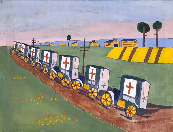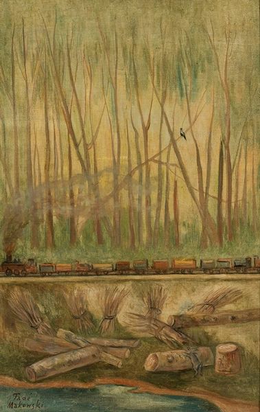 This painting of the Boston and North Chungahochie Express, whose maker is unknown, uses gouache, a kind of opaque watercolor paint. Look at how flat the colors are, how much the artist wants you to know that this is a painting. I love the way the artist has approached the landscape as a series of distinct shapes. The trees, for example, are like rows of lollipops receding into the distance. Then there's the puffy smoke, rendered with a loose, almost nonchalant touch, contrasting with the precise, decorative details of the train itself. The colors are muted, earthy, and the overall effect is dreamlike and slightly surreal. Notice the galloping horse, as it’s not pulling the train, but rather accompanying it. The flatness and simplified forms remind me a little of the work of Henri Rousseau, who, like this artist, was self-taught. In both cases, there’s a similar embrace of naivety, a willingness to depict the world in a way that is both childlike and deeply imaginative.