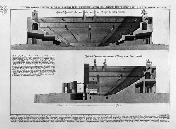 Curator: Immediately, there's a sense of serenity even in ruins, a quiet strength depicted in the structure. It makes me think about the persistence of memory through the built environment. Editor: This pen and ink architectural sketch, titled "Floor Plan of the Surgeon at Pompeii," rendered with meticulous detail by Giovanni Battista Piranesi, focuses our attention on material remnants and labor. Curator: I’m captivated by the geometry, how it dissects and reveals the interior – a hidden world exposed. I almost feel like I am right there on location! The light and shadows create an ethereal effect. Editor: What's particularly striking about this work is Piranesi’s interest not merely in the artistry but in the material reality of construction itself: the very means through which those dwellings came to be and endured. We can consider Piranesi’s labor too: the ink, the paper, the printing press involved in making and disseminating such works. Curator: Absolutely. Looking at the etching, it seems as though it captures more than just the plan; there's a tactile quality; you can almost feel the textures and history embedded in the architectural lines, its penmanship feels alive somehow. It sparks a narrative of people, craft, and resilience. Editor: I appreciate the intersection of history-painting, cityscape thematics, and pure geometry in the plan. Piranesi gives consideration to both high art and "craft" by showcasing a floor plan, which normally might just be a document, into something almost dreamlike. Curator: It evokes contemplation on time, doesn't it? We're peeking into lives tragically interrupted, yet through art, the inhabitants achieve an echo into modern days. The skill of the craftsmanship preserved on the walls comes alive with imagination. Editor: Indeed, it encourages a reflection on the labor, social context, and material conditions of both Pompeii's inhabitants and of Piranesi himself as the interpreter. Curator: So true. This voyage through Piranesi's sketch makes one question the boundaries of time, reality, and artistic impression; each a palimpsest, interwoven, and enriching the next, and its a very inspiring consideration to close with. Editor: Thank you. And thinking on all we have said, our encounter serves as a good reminder that art’s beauty always exists alongside complex socio-economic forces that shape both its creation and lasting significance.