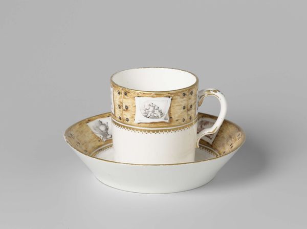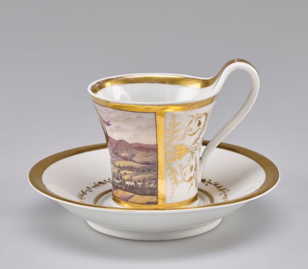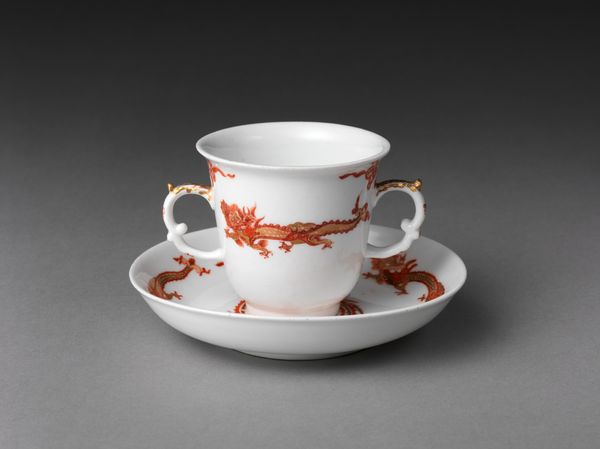 This cup and saucer were produced by the Worcester Porcelain Works, established in 1751, a period marked by significant social stratification and burgeoning global trade. Consider how an object like this reflects the intersection of class and colonialism. Tea, once a rare commodity, became a symbol of British culture, intimately tied to colonial expansion and the exploitation of resources and labor in places like India and China. Owning a delicate tea set like this one signaled a certain level of social status, an aspirational participation in a refined, global culture. Notice the intricate, gilded decoration against the warm coral ground. It evokes both luxury and the exotic. These motifs were not merely decorative; they were cultural commodities, laden with the weight of imperial narratives and power dynamics. Think about the stories this cup and saucer could tell, of drawing rooms and social rituals, but also of the complex, often troubling, networks of trade and empire that made such refinement possible.