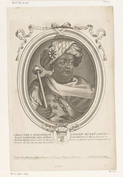 Curator: Here we have a striking engraving, "Portret van Albrecht von Brandenburg," created after 1630 by Peter Troschel. Editor: My initial reaction is that of stark contrasts and meticulous detail—almost an austere yet powerful presence emerging from the page. Curator: The work is executed in a Baroque style, as evidenced by its ornamental frame and detailed rendering. Prints like this served as reproducible records, crucial for disseminating images of power and influence. How do you read the symbols surrounding the portrait? Editor: The oval framing and the surrounding Latin inscriptions create a visual rhetoric typical of formal portraiture. Note the texture achieved through the cross-hatching—it suggests a somber mood, while highlighting Brandenburg's features. The emphasis here is undeniably on rank and virtue. Curator: Indeed, we see how the materials themselves play into that role. Engravings allowed for mass production, which created the potential to reach wider audiences, thereby expanding the Cardinal's presence beyond the elite circles who could commission painted portraits. This print makes his image—and his authority—much more accessible. What do you make of his attire and bearing? Editor: His garments and expression reflect his high office—there’s a stillness that’s less about individual character and more about symbolic weight. It speaks to a position beyond the individual. It invites the audience to scrutinize, perhaps to idealize the position of the figure as an ecclesiastical authority. Curator: The inscription certainly emphasizes that status. Looking closer, we can imagine the workshop, the tools involved—each cut a careful, calculated choice to convey not just likeness, but power itself, disseminated via relatively accessible media. The print represents how the social context, techniques and tools impacted image and the public, don't you think? Editor: Absolutely. I notice more now the technical choices that amplify the overall impression. Seeing that visual layering really transforms the impact. Curator: Considering these elements, "Portret van Albrecht von Brandenburg" not only documents a prominent historical figure but reveals the dynamics of production, consumption, and the perpetuation of power in early modern Europe. Editor: Yes, beyond mere likeness, it is the very act of representing power through careful material articulation and stark stylistic choices, that defines its artistic core.