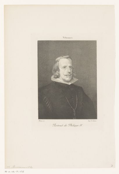 Editor: Here we have Rogelio de Egusquiza's "Portrait of Pedro Calderón de la Barca," created in 1902, a graphite drawing held at the Rijksmuseum. The stark realism gives the subject a somewhat severe, intellectual air. What stands out to you? Curator: It's fascinating how Egusquiza, working at the turn of the century, reaches back to represent Calderón, a major figure of the Spanish Golden Age. What do you make of his decision to portray a 17th-century playwright so many years later? What kind of cultural memory is being invoked here? Editor: Perhaps a desire to connect with Spain's artistic and literary heritage? There’s something very deliberate about the likeness, like he's trying to capture Calderón's essence. Curator: Precisely! Notice the detail given to the medal – it likely represents a specific honor or affiliation. The symbols within objects carried powerful meanings. Think about what these symbols meant during Calderón’s time versus their significance, if any, in 1902. Editor: It does make me wonder about the context of its creation. Why depict Calderón at that moment in time? Curator: What might the artist be suggesting about the relevance of classical Spanish drama in the face of modernism? The severe expression…is it meant to convey wisdom, melancholy, or something else entirely? Perhaps Egusquiza aimed to rekindle interest in classic Spanish drama through a familiar face. Editor: That’s given me a completely different way to appreciate the piece. It’s not just a portrait, but a statement. Curator: And those statements are steeped in historical context, as a window to cultural continuities across the centuries. Always ask: what memory is at work in any given image?