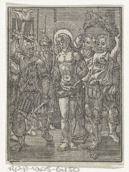 Editor: This engraving, titled "Christus aan het kruis," was created between 1648 and 1657 by Christoffel van Sichem the Younger, and it depicts the crucifixion. I'm immediately struck by how densely packed the composition is. It almost feels claustrophobic. How should we interpret this piece, especially considering it is a print? Curator: It’s vital to consider the means of production here. Engravings like this were often made for mass consumption. Think about the labor involved in creating the printing plates, and then the countless copies that could be distributed. Editor: So, it wasn't necessarily about the 'aura' of a unique artwork? Curator: Precisely. We need to look at this not just as an artistic expression but as a commodity, part of a network of production and distribution. Consider who was buying these prints and why. How might the social context influence its subject matter and visual style? Editor: Given its religious subject matter, would it have been consumed as propaganda or even personal devotion? And what kind of labor was involved? Was the engraver considered an artist or an artisan? Curator: The line is deliberately blurred. The value wasn’t only aesthetic; it lay in its didactic purpose and wide accessibility. As for labor, the engraver likely worked within a workshop system. Think of the material cost of the copperplate, the inks, the paper—all crucial components. Editor: So by examining the material conditions of its creation and reception, we understand its cultural function. Fascinating! Curator: Exactly. By focusing on the materiality and production process, we move beyond traditional art historical narratives. I've learned just how material-centric art history can be!