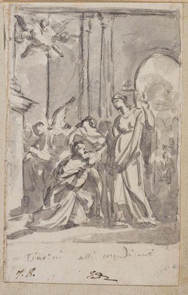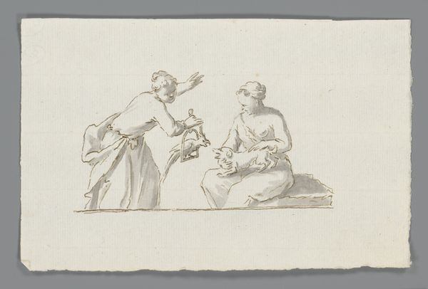 Giovanni Battista Cipriani rendered this drawing, Thalia, Clio, and Melpomene, in the late 18th or early 19th century. We see here the three muses of comedy, history, and tragedy. Each holds an attribute indicative of her respective domain: Thalia, the comic mask; Clio, an open book; and Melpomene, a tragic crown. The mask, a theatrical device, transcends its immediate function, becoming a potent symbol of transformation. I am reminded of the ancient Greek theater, where masks amplified emotions. Observe how the mask’s exaggerated features externalize inner turmoil, allowing for both catharsis and critique. Consider how this motif evolves: from ritualistic origins to Renaissance commedia dell’arte and beyond, the mask persists as a visual shorthand for the human condition’s duality. It's as if the mask itself remembers and re-enacts our collective encounters with the profound complexities of life. This piece acts as a touchstone, reminding us that symbols traverse time, perpetually reborn in new contexts.