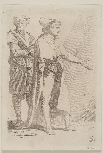 Around 1770, Jurriaan Andriessen created this drawing, “Laenas Draws a Circle in the Sand Around Antiochus IV Epiphanes,” using pen and gray ink. The figures are rendered with a neoclassical precision, yet it is the circle at their feet that anchors the composition, drawing us into the symbolic heart of the scene. This isn't just a depiction of an event; it's a study in power dynamics and spatial semiotics. Andriessen uses the circle as a visual and conceptual boundary, a space of negotiation and confrontation. The characters are caught in a spatial dilemma that highlights the tension between Roman authority and Antiochus' defiance. The circle, in this context, becomes a stage for a power play, a battle of wills framed by the seemingly simple act of drawing a line. It emphasizes that the meaning of a space is not just where one is, but also the actions that unfold within it.