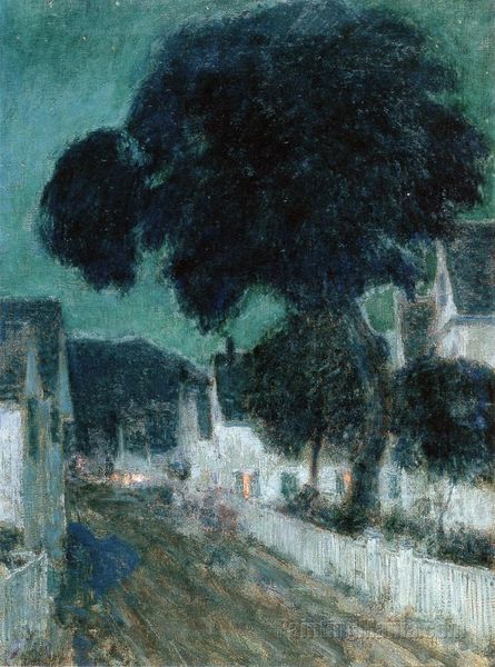Henri Rousseau captured this view of the Palais du Metropolitan with oil on canvas, presenting a scene where urban architecture meets the natural world. Dominating the composition is the Palais, its tower rising like a beacon amidst the foliage, a testament to human ambition reaching for the heavens. Yet, juxtaposed with this architectural assertion, we see plumes of smoke billowing, hinting at industry and the transient nature of modernity. The road, a path of progress, is lined with trees, ancient symbols of life and growth, leading our eye towards the Palais, a juxtaposition that reminds us of the constant interplay between nature and human endeavors. Consider the smoke—it echoes the smoke from Mount Vesuvius in paintings of Pompeii, a reminder of nature's volatile power. Here, it speaks of industry, but the underlying anxiety about progress remains. Rousseau masterfully uses these symbols to tap into our collective memory, stirring a sense of both awe and unease. This visual dialogue reflects the cyclical nature of human history, where symbols evolve, adapt, and resurface, carrying echoes of the past into the present.