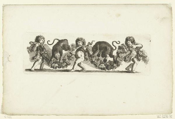 Christiaan Godfried Schutze van Houten created this etching, titled 'Two Cows and a Sheep and other Animals', sometime in the mid-19th century. At first glance, the artwork appears to be a simple depiction of farm animals, but its creation occurred during a time of significant social and economic change in the Netherlands. The artist's detailed rendering of each animal evokes a pastoral scene, reflecting a longing for a simpler, agrarian past amidst rapid industrialization. The meticulous rendering of each animal can be viewed as a celebration of rural life and its inhabitants, while also reflecting the societal values of order and industriousness of the period. There’s an emotional resonance in the way these creatures are depicted, an attempt perhaps, to preserve a way of life that was quickly vanishing. It serves as a gentle reminder of the interconnectedness between humans and the natural world, and an elegy for a disappearing rural existence.