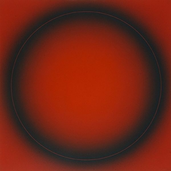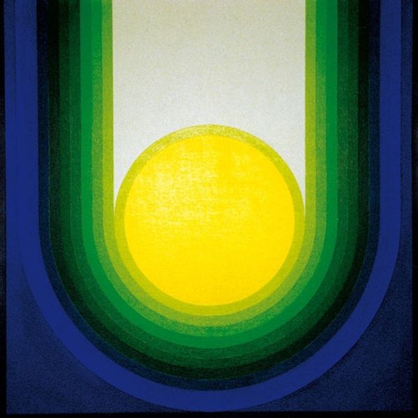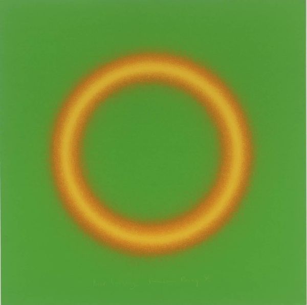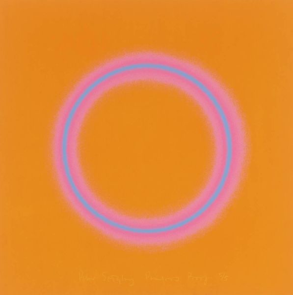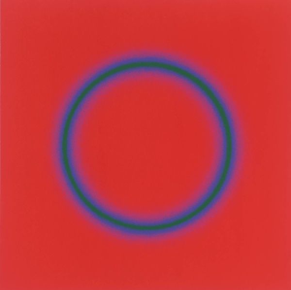 Curator: So, we're looking at Dan Christensen's "Bass Casio," an acrylic on canvas created in 1994. My immediate reaction is its atmospheric depth. It’s both calming and a bit unsettling. What do you think? Editor: My initial thought goes right to the technique, to the process involved in its making. I see a dialogue between intentional form, the circles, and the almost accidental application of spray, creating this incredible shimmering effect. It’s reminiscent of industrial processes meeting organic shapes, really challenging our traditional art categories. Curator: Absolutely. The spray technique makes me think about our cultural moment, of accessible and readily available mediums. Seeing these spectral geometric shapes also draws my attention to its position between the macro, cosmos, and micro, cellular. What did this mean for the communities of the early 90's when it came out? The title itself suggests something musical, accessible technology for creating and making. Editor: Right, thinking about that musical aspect leads me to consider what’s usually a very structured creation process for musical instruments and comparing it to the application of color here. You mentioned the cosmos and cellular—perhaps Christensen is drawing on the construction of not only manufactured tools, but nature and art? Curator: And to add another layer, consider the name "Casio," referencing Japanese technology, and the title paired with abstraction. How does the technology change cultural creation and influence the accessibility and production of artwork, blurring lines of high and low, global and local, in both music and the art world? It makes one question the implications of these developments for diverse artistic communities. Editor: It does complicate notions of authenticity and originality. The shimmer, achieved through seemingly industrial techniques, grants the canvas this captivating presence. We can analyze art historical lineage, sure, but by focusing on the artist’s approach, we connect more profoundly to the artwork as something made. It is also something being purchased, sold, consumed as part of market. Curator: Considering all this, the simplicity of its execution really resonates with its social messaging. Editor: Precisely. It is an examination of the construction of modern art and society itself.