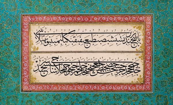 Editor: We’re looking at “Calligraphy,” a piece of decorative art. It seems to be ink on paper by Necmeddin Okyay. The intricate, flowing script creates such a sense of rhythm and almost a meditative calm, but there's so much I'm missing. What do you see in this work? Curator: What strikes me immediately is how the artist imbues the word, the *written* word, with immense power. It isn't just communication; it’s almost an invocation, a visual echo of deeply held cultural and spiritual beliefs. This is an example of visual language serving as more than just text, wouldn't you agree? Editor: Absolutely! The geometric patterns too. They feel deliberate. Curator: Precisely. Think about how geometric patterns have historically represented the divine and infinite in Islamic art, reflecting underlying mathematical order in the cosmos. Here, geometry is a language, a form that communicates just as potently as the Arabic script itself, each square an echo. Have you noticed how the script overlaps the geometry? Editor: Now that you point it out, it creates tension! Like the human and divine overlapping. Curator: Yes! Consider how calligraphy, in its fluid curves and controlled strokes, mirrors the Sufi concept of constant seeking, the eternal quest for divine knowledge. It represents humanity’s reach toward understanding. Editor: I hadn't considered that calligraphy itself could be a symbol, reflecting spiritual longing. Curator: These pieces aren’t merely decorative. They actively *engage* cultural memory, whispering narratives across time and space through their rich symbology. Do you see it? Editor: I do. It's beautiful how layers of meaning can be embedded within visual forms. Curator: Indeed. Seeing the potential in images opens avenues into greater understanding.