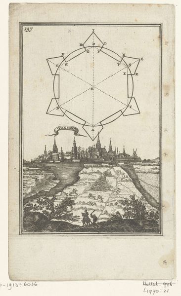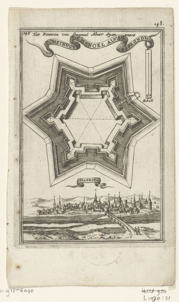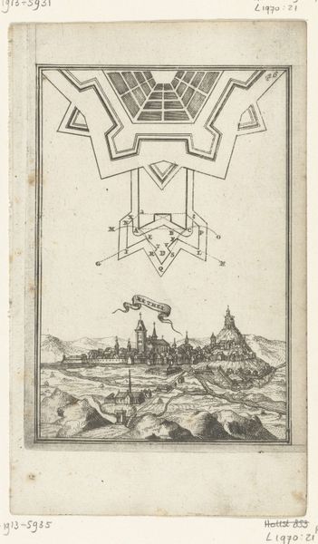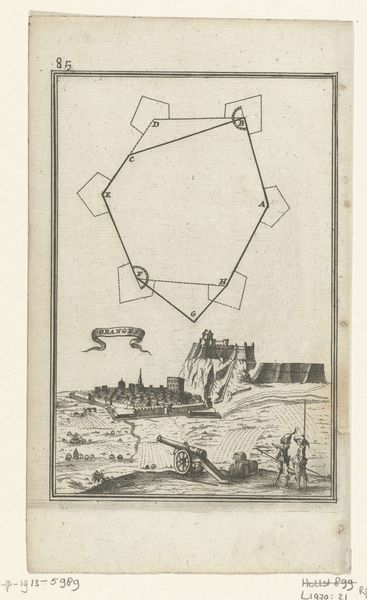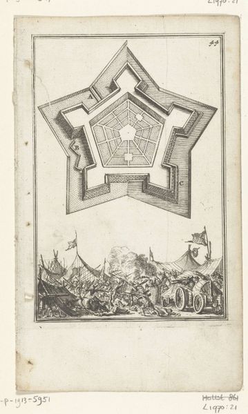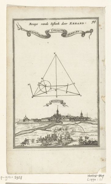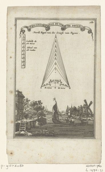 This illustration for Allain Manesson Mallet's 'Den Arbeid van Mars' was made by Romeyn de Hooghe, most likely using etching or engraving techniques. These processes involve incising lines into a metal plate, inking the surface, and then using a press to transfer the image onto paper. The linear quality, with precise lines and cross-hatching, is characteristic of printmaking. It allowed for the efficient reproduction of images, in a time before photography. Note that there is quite a lot of labor involved in the production of a print like this. The artist has to be very skilled to create such a detailed image. The lines are carefully placed to create the illusion of depth and texture, which in turn reflects the amount of work it took to build the structure in the picture, the 'tomb of Pagan'. The print's function as an illustration speaks to the intersection of art, publishing, and the dissemination of knowledge. The techniques used have a deep connection to both artistic and industrial practices, blurring the lines between craft and fine art. So, next time you see a print, think about the many steps that went into its production, and the social context in which it was made.