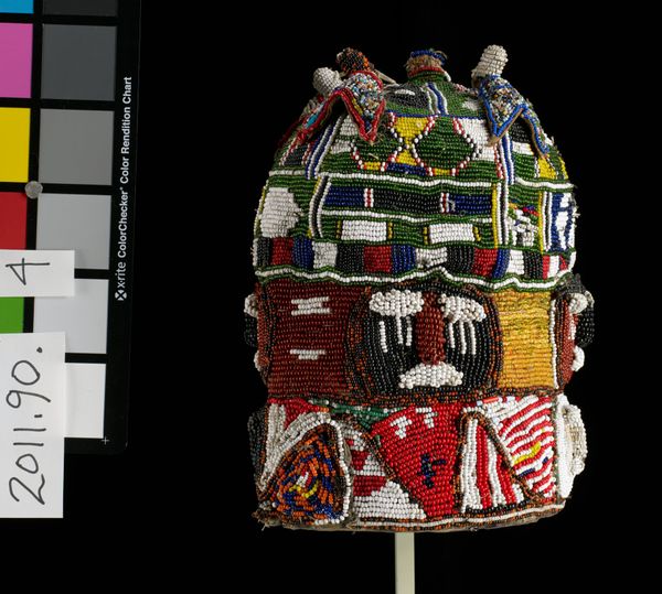 This hat, of no known date, was crafted by an anonymous artist using an array of textiles and adornments. It's a real material exploration. What strikes me is the mix of patterns and textures. There's the quilted red section, juxtaposed with a floral print, a brocade, and another with geometric shapes. And then those coins down the side, like a cascade of golden punctuation marks. The stitching is quite pronounced, almost like a drawing in thread, revealing the maker's process. You can imagine the artist handling each piece of fabric, deciding where it should go, how it should fit, like a collage in cloth. That combination of careful arrangement and intuitive placement reminds me of a painter like Miriam Schapiro, who fearlessly combined different patterns and materials in her femmages. This hat is a reminder that art isn't just about painting or sculpture, it's about how we engage with the world around us.