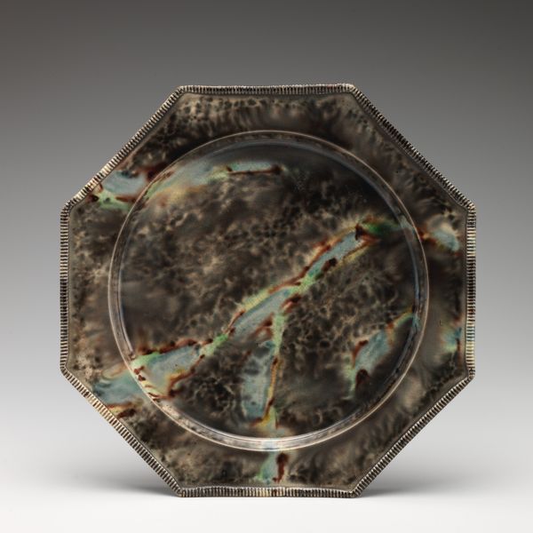 This vase was made by N.V. Haagsche Plateelfabriek Rozenburg, and is polychrome painted with symmetrical floral decorations. The material of the vase is earthenware, which gives it a sense of solidity. The production of ceramics involves molding and firing clay, processes that rely on skilled traditions and specialized tools. This vase is painted with stylized flowers and foliage, showcasing the aesthetic of the Art Nouveau movement. Its colors and shapes evoke nature. The production process is a crucial aspect. The work was made in a factory that used division of labor. The making of ceramics was part of a larger economic system of production and consumption. The floral decoration, though naturalistic, also reflects the industrial production of the vase. Looking at its materials, making, and context, helps us understand the full meaning of the vase, blurring the lines between fine art and craft.