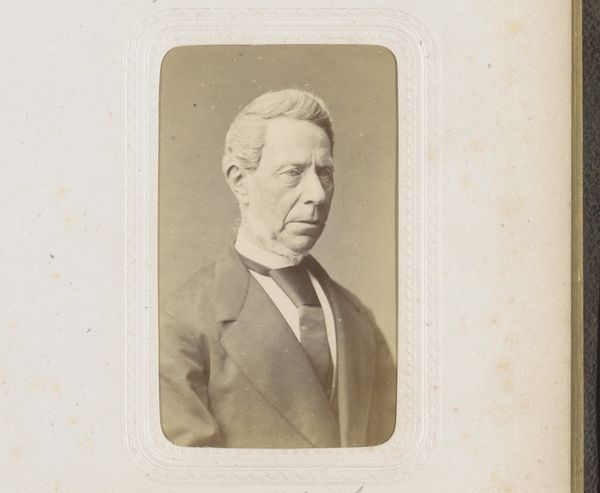 Editor: We're looking at "Portret van een onbekende man," a gelatin-silver print likely from 1873, by Dirk le Grand. It has a very direct and formal quality; the man’s gaze really holds your attention. What do you see in this portrait? Curator: Oh, but doesn't it also whisper of a life lived? The shadows around his eyes hint at stories untold. Perhaps a touch of melancholy? What do you think he was thinking, standing for that photograph? Editor: Perhaps something mundane? It’s easy to romanticize the past. But the detail captured is astounding! You can almost feel the texture of his jacket. Do you think this was a common style for portraits back then? Curator: Absolutely. This gelatin-silver process made photography much more accessible. And formal portraits were the selfies of their day – a way to capture an image for posterity. But imagine, holding still for that long! Did the photographer crack jokes? Promise a free ice cream afterwards? Editor: Haha! Maybe. So, besides the technical advancements, what makes this portrait stand out for you? Curator: For me, it’s that nameless quality, that ‘unknown man’ aspect. It’s a little melancholy and invites so much projection. I find myself crafting stories about him, filling in the gaps, in ways I wouldn’t with a portrait of a famous person. Editor: I see what you mean. His anonymity becomes his defining characteristic. It certainly makes you wonder about all the forgotten faces captured in old photographs. Curator: Exactly. A tiny ghost story embedded in a gelatin print. Food for thought, isn't it?