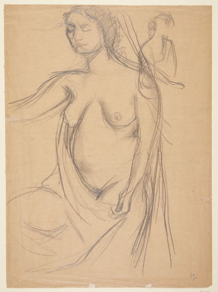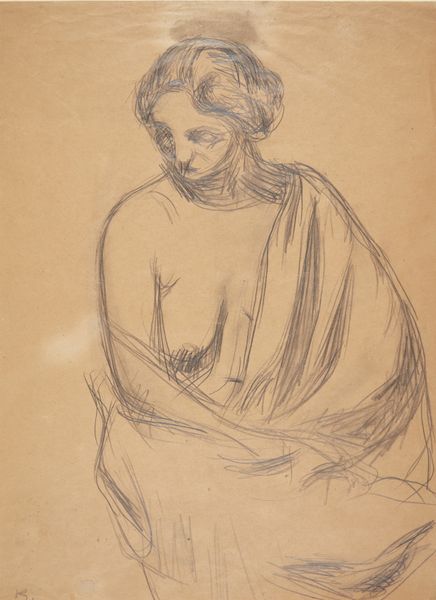 George Clausen created this drawing, "Woman in Profile", with crayon on paper. The woman’s averted gaze evokes classical statues of goddesses or nymphs. The profile view, immortalized in ancient coins and Renaissance portraits, suggests not just an image but an ideal. This pose directs our attention, and we can trace it back through art history. What does she see? The unknown world she faces is left to our imagination. Observe how her hair is arranged, reminiscent of classical sculptures. This particular style can be found in the works of antiquity, as a continuous echo through diverse eras. The profile's psychological depth is palpable; we are drawn into her private world, left to ponder the mystery of her thoughts and emotions. The artist captures her likeness, and the woman becomes a timeless figure, endlessly shifting in meaning through history.