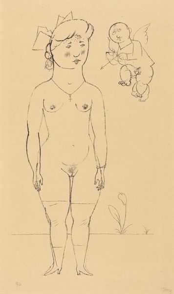 Curator: Looking at this, I find the faceless figure quite haunting. The smooth expanse where the features should be creates an unsettling anonymity. Editor: Indeed. What we have here is Karl Wiener's "Männlicher Akt VI," created around 1925. It's a watercolor piece. Curator: Ah, watercolor. I am struck by Wiener’s handling of the medium. The washes build up the musculature, but also feel very immediate and unlabored. I wonder, was he interested in exploring speed of production, an alternative to oil painting that might be considered more bourgeois? Editor: That's an intriguing angle. Think about the period – Expressionism was flourishing, challenging academic norms. Nudity in art always has a social context, but specifically post-World War I, representing the human form, even in its vulnerability, takes on another layer of significance. Public versus private, and art's increasing accessibility, were key parts of this visual culture. Curator: And Wiener omits the face. Does it render the man everyman? The anonymity levels the playing field, taking him outside any kind of class constraints. He becomes a subject of our observation and of the artist's skill with watercolors and washes. Editor: The removal of the face feels more unsettling than democratic to me, if that’s his intent. This was a tumultuous period in Europe, especially within Germany and Austria, where Weiner operated, between the wars. Art offered a new kind of language as new governments began to define and reassert themselves with imagery. Perhaps it speaks more to that loss of self. Curator: It speaks volumes about how we read the body, that’s for sure. We see musculature, a male nude, and yet our attention immediately goes to what isn’t there, this smooth, absent face. What assumptions are being interrogated around representation in general, I wonder? Editor: Precisely. And who would be seeing this image at the time? For whom was it intended, and where might it be displayed? These institutional questions also dictate its ultimate significance in my mind. Curator: Thanks for walking me through some possible interpretations, those points are quite astute and give us a richer idea. Editor: A pleasure. I always enjoy exploring new perspectives.