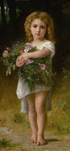 Alexei Harlamoff created this painting using oil on canvas. The smooth, almost porcelain finish he achieved was typical of academic painting at the time. But that doesn't mean it's without interest from a material perspective. The material of oil paint, with its capacity to mimic textures and light, was perfect for conveying the soft, idealized features of the young woman. Note the rendering of her clothing: the coarse weave of the apron contrasting with the smooth, subtly colored dress. This contrast draws our attention not just to aesthetic qualities, but also to social distinctions. Harlamoff was catering to the taste of wealthy patrons, eager for images of picturesque peasantry. In a sense, the painting is a commodity, much like the labor of the young woman herself, turned into an object of visual consumption. So, while this may seem like a straightforward, representational painting, its reliance on the material properties of oil paint also makes it an artifact of social and economic relations.