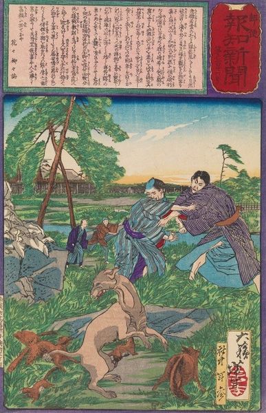 Tsukioka Yoshitoshi produced this woodblock print depicting Matsumoto Ai in action, likely sometime in the late 19th century. Woodblock prints like this one were not unique works of art, but rather products of a complex collaborative process. The artist would create the original design, which was then meticulously carved into woodblocks by skilled artisans. Different blocks were used for each color, requiring precise alignment to achieve the final image. Look closely and you can appreciate the labor involved. The clean lines, the subtle gradations of color, and the dynamic composition, all speak to a sophisticated understanding of materials and process. This print isn't just a representation; it's an object deeply embedded in a specific mode of production, one that balanced artistic vision with technical skill. It’s a potent reminder that art doesn't emerge from thin air, but from the hands of workers, and from a system that values both creativity and craft.