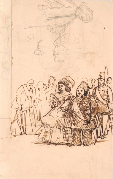 Wilhelm Marstrand’s ink drawing captures a scene from Cervantes’ Don Quixote. The fluidity of ink allows for rapid, expressive lines, defining form with an economy that speaks to the artist's skill. The choice of ink on paper offers a directness, a sense of immediacy, which reflects the character of Don Quixote himself, who was always ready to act, even rashly. The light touch of the medium brings out the satirical edge of the scene, emphasizing the absurdity of the characters' interactions. Marstrand, working in 19th-century Denmark, engaged with a story from a much earlier moment of European history. This resonates with the book's themes of yearning and aspiration. Through Marstrand's hand, the simple materials of ink and paper amplify the social dimensions of the narrative. He elevates it beyond mere illustration into a commentary on human nature and the timelessness of folly.