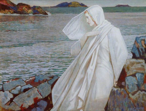 Fujishima Takeji, who lived from 1867 to 1943, painted "Nude by the Lake," though the exact date remains unknown. Fujishima was instrumental in introducing Western art styles to Japan, and he navigated the complexities of cultural exchange with sensitivity. In this painting, the nude woman, rendered with soft brushstrokes, stands at the water’s edge, seemingly caught between worlds. Fujishima’s artistic journey reflects a moment in Japanese history when artists sought to reconcile their own traditions with Western influences. "Nude by the Lake" invites us to reflect on the tension and beauty inherent in such cultural encounters. Consider how the woman’s positioning—neither fully in the water nor entirely on land—might symbolize a broader negotiation of identity. In a rapidly modernizing Japan, many felt a similar tension, caught between the familiar shores of tradition and the beckoning currents of change.