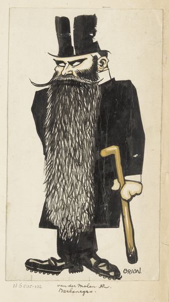 Curator: Here we have Henri-Gabriel Ibels's "Portret van de chansonnier Marcel Legay," a pencil drawing from 1893, currently housed at the Rijksmuseum. It depicts the cabaret singer Marcel Legay in a rather…exuberant pose. Editor: Exuberant is one word for it. My immediate impression is a sense of frantic energy. The figure seems almost swallowed by the stark background, yet the charcoal lines create this unsettling dynamism. It's all quite expressive, wouldn’t you say? Curator: Absolutely. Ibels, deeply embedded in the artistic and political milieu of late 19th-century Paris, uses caricature here to probe Legay’s public persona and its potential artifice. Think about the rise of the café-concert and the shaping of celebrity through performance. How much of Legay's identity was constructed for the stage, and what did that mean in terms of social authenticity? Editor: Which speaks volumes about the labor behind crafting that persona, right? Looking closely, you see how Ibels uses rapid, almost frantic, pencil strokes to build volume, especially in the coat. The materiality itself—the graphite, the paper—reflects the ephemeral nature of performance. Was this sketch commissioned, or a more spontaneous capturing of Legay at work? Curator: Knowing Ibels's penchant for social commentary and his associations with Le Barc de Boutteville and later Toulouse-Lautrec, it’s tempting to see this as something of an insider’s take, a critique perhaps, of the constructed self. Remember the fin-de-siècle anxieties around identity and authenticity—and the cabaret was certainly a key site for negotiating these concerns. Editor: Precisely. The very *process* of the drawing, its roughness, suggests a resistance to the polished image typically associated with celebrity portraiture. Ibels isn't interested in idealizing Legay, but rather in laying bare the performative aspects of his trade through the deliberate application of pencil on paper. The weight and grain of the pencil is striking. Curator: And it's fascinating to consider the potential implications for today's performative social-media culture. Ibels asks, subtly, what happens to identity in an age of increasing theatricality? Editor: Indeed. Looking at Ibels' work through a lens of materiality and production makes the artist’s commentary even more evident. It allows us to consider labor and context as much as form. Curator: It serves as a reminder that what we see is very often manufactured, constructed. Editor: An essential provocation in our era of manufactured realities.