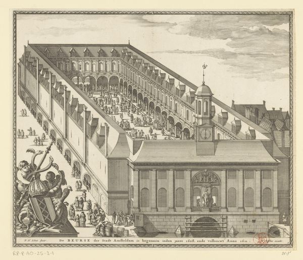 This print from before 1668 depicts the Amsterdam Stock Exchange by Hendrik de Keyser. It offers us a glimpse into the economic and social life of the Dutch Golden Age. Amsterdam in the 17th century was a global hub of commerce and cultural exchange. This detailed depiction of the stock exchange, bustling with figures engaged in trade, reflects the city's central role in shaping early modern capitalism. But who was allowed into this space of economic power? The Exchange would have been populated by men, and its profits were built, in part, from the violence of colonialism and the slave trade. The anonymous artist emphasizes the grandeur of the building, yet includes ordinary people engaged in the daily business of exchange. This reminds us that economic systems are built by individuals, within specific cultural and historical contexts. The Exchange, more than just a building, embodies both the promise and the complex realities of its time.