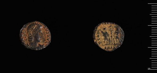 Editor: Here we have a bronze Decanummium of Justinian I from Kyzikos. It looks quite worn, but I'm curious about its cultural significance. What can you tell me about this piece? Curator: This coin, though small, speaks volumes about the Byzantine empire under Justinian. The image on the coin was carefully controlled. What message do you think Justinian wanted to convey through something as common as currency? Editor: Perhaps, power and stability? Coins are used by many people. Curator: Exactly. Distributing these coins, stamped with imperial imagery, extended Justinian's authority into everyday life. Consider how this small object played a role in legitimizing his rule. Editor: So, even an object as humble as a coin can be a powerful form of propaganda. Curator: Precisely. It highlights how art, even in its most functional forms, reflects the socio-political landscape of its time.