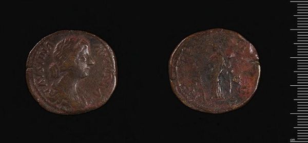 Curator: Here we have a purported "Coin of Samos under Caracalla," currently held in the Harvard Art Museums collection, weighing just over 19 grams. Editor: It looks like it has lived quite a life; the patinated surface tells a story of wear and handling. Curator: Indeed. It's fascinating how an object like this becomes a vessel of cultural memory, attempting to embody the power and reach of Caracalla’s empire through symbolic representation. Editor: I'm more interested in the labor involved in its production—the mining of the metals, the skill of the die cutter, the socioeconomic context that allowed for the production of coinage at such a scale. But how did they know it was a forgery? Curator: While intended to convey imperial authority, the fact that it is a forgery complicates that reading, doesn't it? Perhaps it speaks to the enduring allure of power and the impulse to replicate it. Editor: Perhaps. Or maybe the forger was simply trying to make a buck. Still, an object’s materiality can teach us a lot about past economies. Curator: Ultimately, whether authentic or not, it speaks to the enduring legacy of Caracalla and how symbols can transcend their original intention. Editor: Agreed. I'm left thinking about the human effort, and the economic systems that drove it.