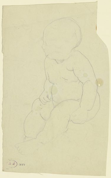 Victor Müller made this drawing of a putto with pencil and paper. He captured the essence of the chubby infant with firm strokes and varying line weight. The choice of pencil as a medium influences the appearance of the drawing. The soft graphite creates a range of tonal values, from light to dark, giving form and volume to the figure. The texture of the paper also plays a role, adding a subtle graininess to the image. Müller likely engaged with traditional drawing techniques, honing his skills through practice and observation. The physicality of drawing, the act of applying pencil to paper, imbues the artwork with a sense of immediacy and intimacy. The artist's hand is present in every line, revealing the labor involved in creating the image. The simplicity of the materials contrasts with the skill and artistry required to capture the human form with such precision. Thinking about materials, making, and context invites us to consider the social and cultural significance of Müller's drawing, challenging us to appreciate the value of both fine art and craft.