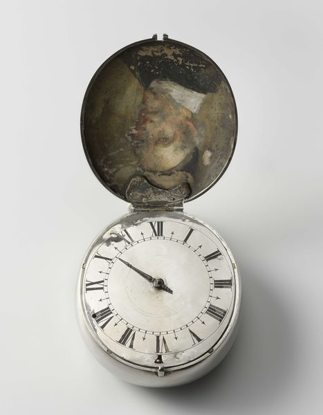 Curator: Ah, a little time capsule, quite literally! Here we have a pendant watch, crafted sometime between 1610 and 1625. The piece incorporates indicators not only for the time but also for the date, the phases of the moon, and… hold on, is that an aspectarium? Editor: It feels a bit burdened, doesn't it? Overloaded with both astrological yearning and a slightly haunted child gazing back at us. All these layers folded within, hinting at clandestine rituals, maybe? Curator: It is astonishing, isn't it, how much meaning they crammed into these tiny objects. We find gold and other metals in its manufacture and a portrait within its hinged upper lid. Imagine, wearing the movement of the cosmos around your neck, literally keeping time with the universe! Editor: That miniature portrait – a tender little ghost peering out! Makes you wonder about the wearer. Perhaps this child or someone they dearly loved? There’s a vulnerable preciousness held tight within that formidable clockwork. Curator: Exactly! The image gives an intimate feel, it humanizes what could otherwise be a purely scientific instrument. The very fact that such complex mechanisms are encased in gold… it speaks to the immense value placed on time and knowledge in the Baroque era, right? Time, beauty, and maybe… vanity? Editor: Definitely vanity! A beautiful instrument becomes a statement piece that serves a purpose and silently hints at arcane wisdom or perhaps aspirations towards it. It makes me think about the human compulsion to try and master both inner and outer realms. Curator: It really is like holding a secret, or a miniature world. Every tiny gear meticulously placed. What do you make of this desire to miniaturize so much information and ornament? Editor: Power comes in many forms. Knowledge, faith, and control condensed to a precious object; It's about having the universe literally at your fingertips. Perhaps a comforting notion for its owner. Curator: Looking at this remarkable objet, you know, I am still thinking about all those layers, literally. How they sought to hold and know everything all at once. So much history, so much intricate workmanship... a genuine feast for the senses and intellect, even now. Editor: Yes, the portrait and celestial ballet feel inherently coupled, whispers of eternity ticking within mortal constraints. Intriguing to reflect upon this pendant, I guess.