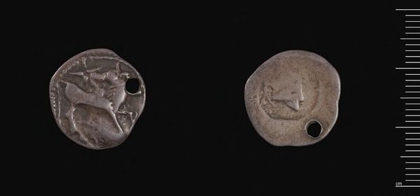 Editor: Here we have a Siglos of the Achaemenid Kings from the Harvard Art Museums. They're these small, ancient coins, and I'm immediately drawn to the figure depicted – seems to be an archer. What do you see in this piece? Curator: I see a carefully constructed symbol of power and identity. These coins weren't just currency; they were a visual assertion of Achaemenid authority, deeply intertwined with the political and social landscape of the time. How might the archer figure be interpreted in relation to gender and power? Editor: I hadn't considered that! I guess I was just thinking about the artistic style. Curator: Consider also how the design reinforces a specific idea of kingship and male dominance, essential for maintaining social hierarchies. It’s a small object, but loaded with ideology. Editor: It's amazing how much history can be embedded in something so small. Curator: Precisely. It challenges us to examine how power operates through art, even in the most mundane objects.