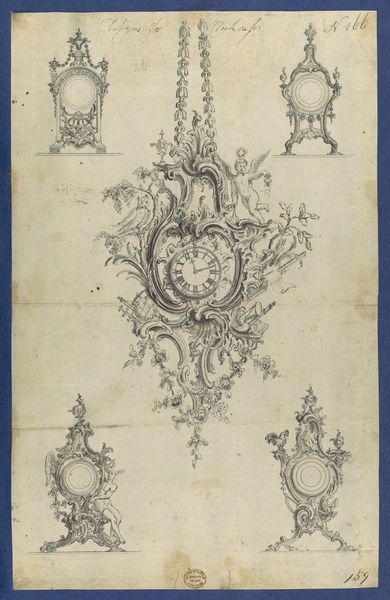 Editor: So, here we have "Pier Glass Frames, in Chippendale Drawings, Vol. I," created around 1754 by Thomas Chippendale. It’s a drawing, an etching, an engraving, all rolled into one decorative-art print. There's so much detail; the flowing lines make me think of baroque design. What do you make of all the symbolism? Curator: The details, indeed, are key! Consider the birds, for example. In Chippendale's time, the presence of birds, often exotic species, signified worldly knowledge and luxury, the reach of the British Empire. But even more significant is where they are placed: perched within an obviously artificial construction. Do you see how that speaks to a cultivated idea of nature? Editor: Yes, I do! It’s not just nature; it's nature controlled and stylized, put into a...frame! Does the frame itself carry meaning? Curator: Absolutely. Think of a mirror in a frame; it’s about reflecting the self, the home, one’s status. Chippendale’s elaborate frame amplifies that, suggesting not just reflection but also embellishment, enhancement of the self. But even the mirroring that this bisected frame creates might reveal some internal sense of proportion and balance, literally! Editor: So, it's not just about showing off, but projecting an idealized image of oneself through the fashion of the time? Curator: Precisely! Chippendale was selling a vision of gentility, but also an aspirational ideal to be acquired. What do you think a contemporary viewer would have made of it? Editor: I imagine they'd see it as the height of sophistication, a must-have item to signal their place in society. It's fascinating how much history and aspiration are packed into a design for a mirror frame! Curator: And how powerful visual symbols remain throughout history, reshaping with each viewing!