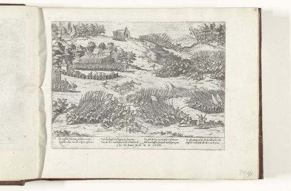 This print, depicting a nighttime raid by Spanish soldiers, was made by Frans van den Wijngaerde in the 17th century. It's an etching, meaning that the artist would have used a sharp needle to draw through a waxy ground on a metal plate, which was then submerged in acid to bite the exposed lines. The resulting incised plate was then inked and used to create the print on paper. The sharp, graphic quality you see is typical of this process, which allows for a great deal of detail. Look closely, and you can see how Wijngaerde used closely spaced lines to create shading and texture, giving a sense of depth to the scene. The printmaking process itself is crucial here. It allowed Wijngaerde to create multiple copies of this image, making it accessible to a wider audience. This was particularly important in a time of conflict, as it allowed for the dissemination of information and propaganda. Far from being a singular work of genius, this print is an artifact of early mass media.